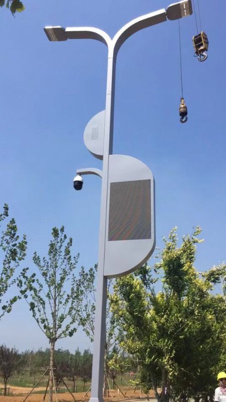 视频监控,一键报警等多种功能集于一身,灯杆颜色采用银灰色,表达现代文明都市的效率、健康、积极、热情融入其中,即安静又不失大气,可以独立成为一体,自带光芒,又可与自然界中绝大多数的颜色混搭来诠释出不同的语言和意义。