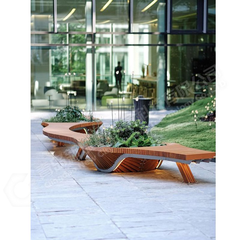 园林座椅的*一种就是钢木结合的靠背座椅,这种钢木结合的靠背座椅有大的、有小的,靠背的曲线弧度也各有不同,一般钢木结合的靠背座椅,它的座椅及椅脚是