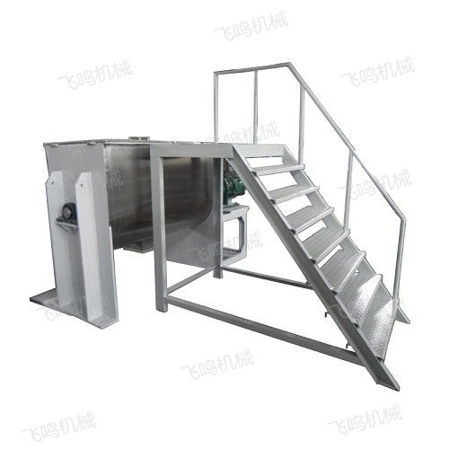 混合机筒体为U型(或圆筒形),在顶盖或筒体上部有进料口,根据用户需要其上可装喷雾加液装置。筒体内装有单轴转子,转子是由轴、横撑及螺带组成,螺带有双层和三层之分。筒体底部中央装有出料装置(出料装置分手动出料和气动出料)一般为手动出料(注:气动出料订货时说明,另加价)。