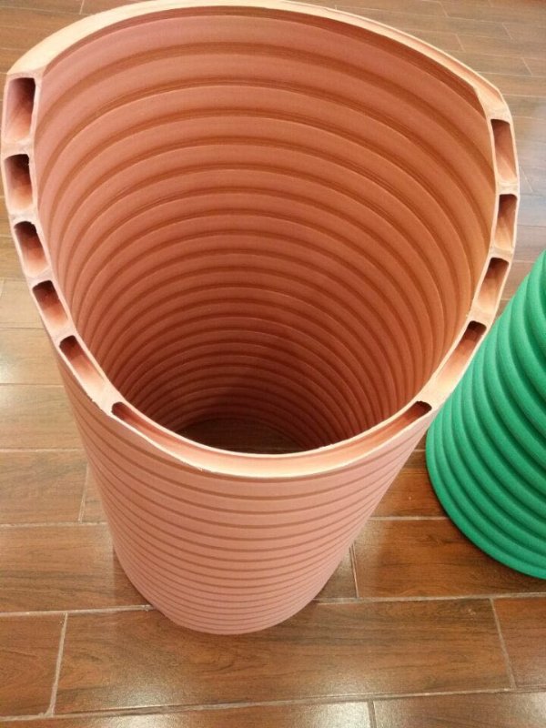 管材波高增加近10% ,截面惯性矩增加50%以上,达到可以生产环刚度等级SN16级以上管材的技术要求。产品具有强度高、应用范围更广的优势。降低施工难度提高工程质量