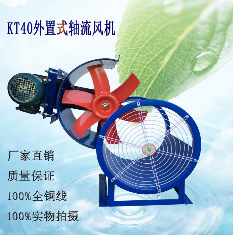 电机外置(电机在机壳上)皮带传动,型号为KT40,其性能参数与T40风机相同,也可根据用户要求改变转速以达到用户所需性能,其*大作用可以排高温气体或防潮气体。