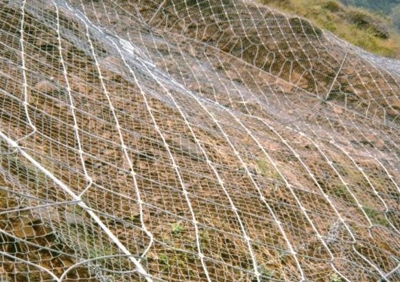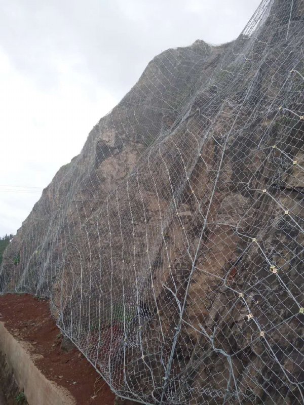 网为主的各类柔性网覆盖包裹在所需防护斜坡或岩石上,限制坡面岩石土体的风化剥落或破坏以及危岩崩塌,将落石控制于一定运动范围内以保护行人和车辆安全通过的防护工具。