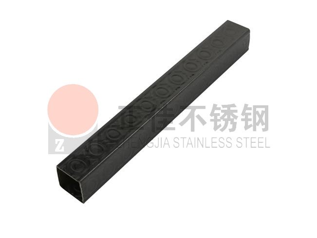 不锈钢方管的表面就拥有元宝花纹,十分受新老顾客的欢迎。不仅如此,其表面还采用了真空电镀着色工艺,使其表面呈现出黑钛色。其材质是304,耐腐蚀性能显著。