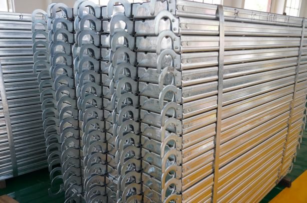 钢管做主构件,立杆是在一定长度的钢管上每隔0.5m焊接上一个圆盘,用这种新颖、美观的圆盘连接横杆,底部带连接套。