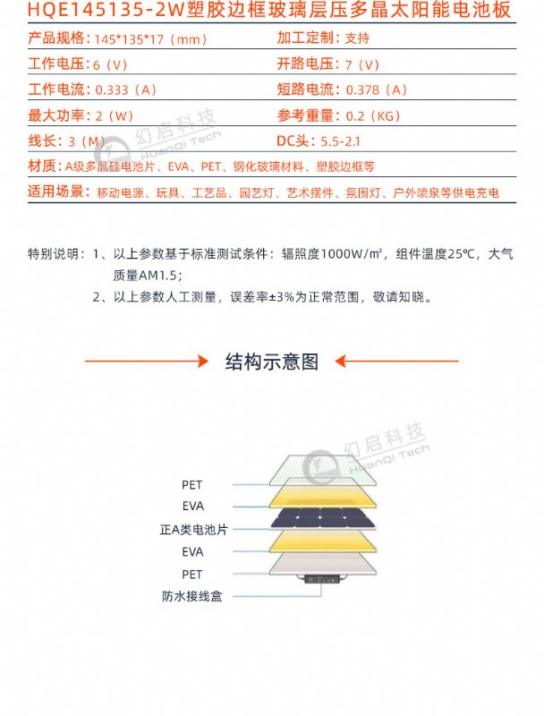 钢化玻璃、PET防老化背板、塑胶边框等