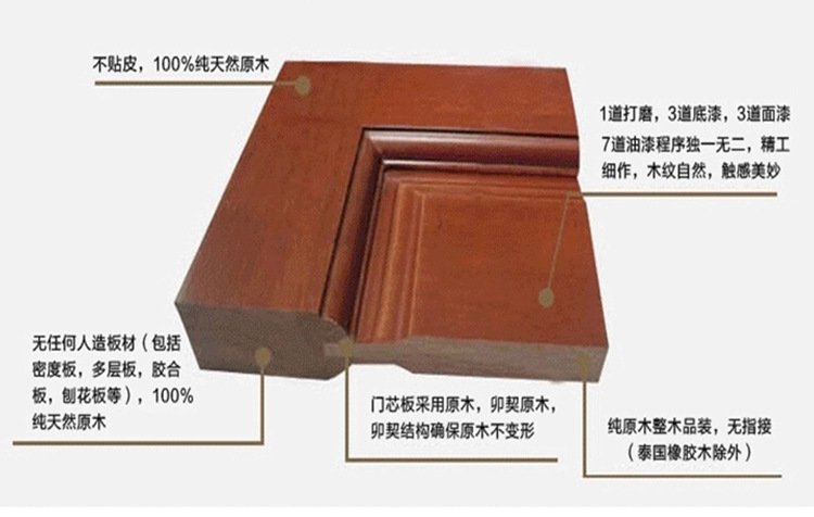门套线每个部件的材质都是同种树木且内外一致,不易变形、不易开裂、无指接、不贴皮。原木门属于定制产品,同一款木门可以选择不同的颜色和材质。