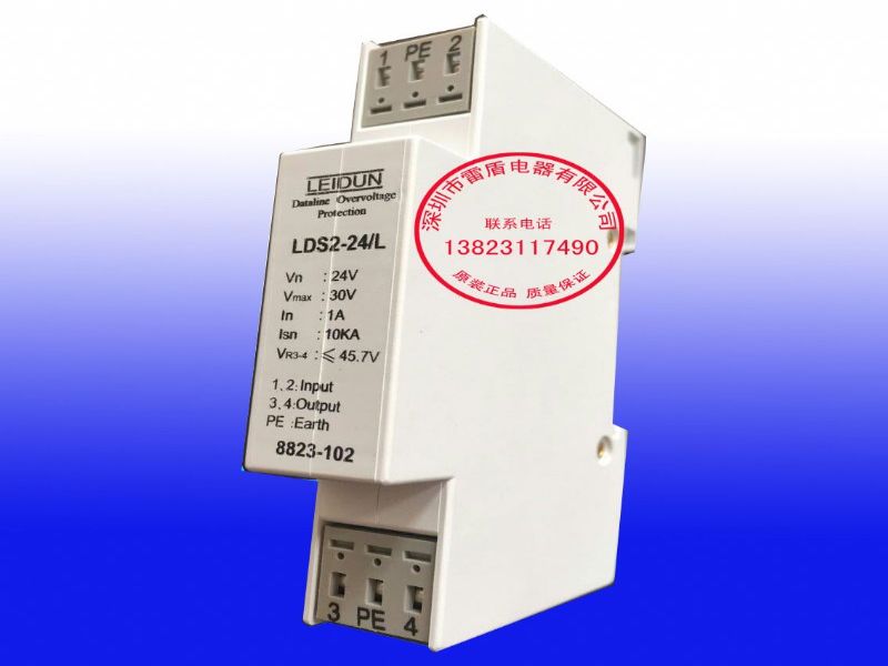 接头,适用于2/3/4通讯线路安装维护极为方便,方针对不同的线路选择*适当的产品进行保护,“LEIDUN”雷盾LDS2系列数据信号电涌保护器的工作电压设计为5ⅴ-110ⅴ,可为各种不同的系统的数据信号线路提供过电压保护。并有电阻型和电感型两种设计。