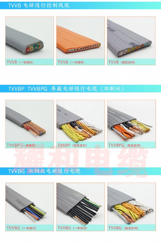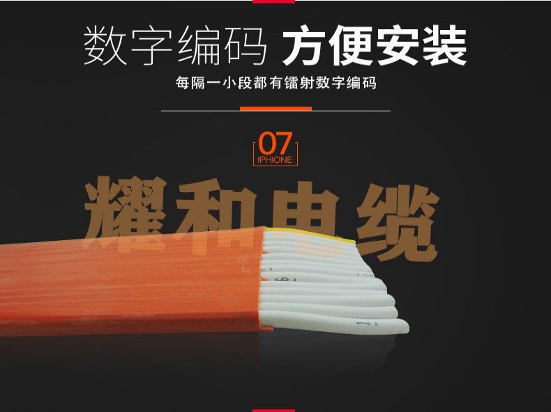 耀和特种扁平电缆:额定电压300/500V(YZWB型),450/750V(YCWB型);线芯的长期充许工作温度应不超过65℃ ;“W”型电缆具有耐气候和一定的耐油性能,适宜于在户外或接触油污的场合使用,B代表扁平电缆;ZR-型