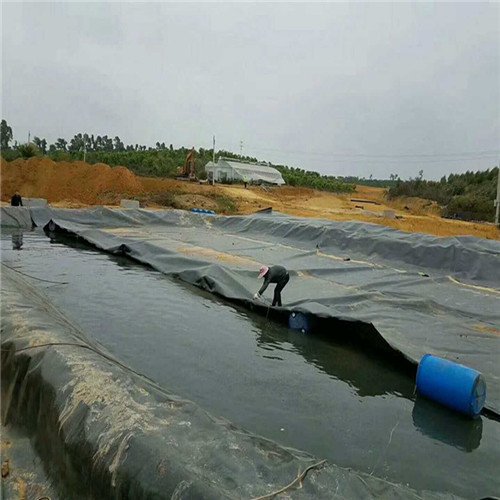 管道(底膜建议使用1.0mm以上的美标土工膜进行铺设)铺 hdpe 防渗膜是整个防渗系统中一道关键的工序。铺设前,施工部门会同有关部门对基底进行检查验收。在铺膜前对 hdpe 防渗膜外观质量进行开包检查,记录并修补已发现的机械损伤和生产创伤、孔洞、折损等缺陷。hdpe 防渗膜裁切之前,经丈量其相关尺寸,然后按实际裁切,逐片编号并作记录,同时对场地在平面图上编号。在膜铺设中膜与膜之间接缝的搭接宽度不小于 100mm,使接缝排列方向平行于大坡脚线,即沿坡度方向排列。底膜铺设过程中需要用到绳梯等辅材,膜铺设完毕后,在一般边坡和场地,铺设组人员在检查铺设区域内的每片膜的编号与平面布置图的编号一致,并确认无误后,按规定就位膜的位置立即用沙袋进行临时锚固,然后检查膜片的 搭界宽度不小于 10cm,需要调整时及时调整,为下道工序作好充分准备。然后 顺次铺设边坡