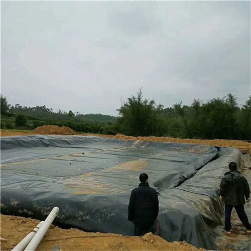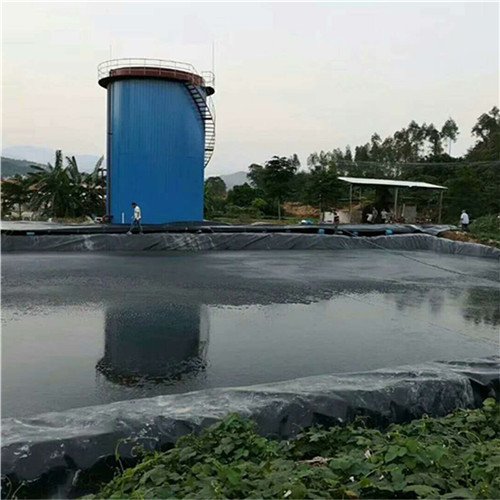 养殖场现在流行建造的沼气池,有些地区称为盖泻湖或黑膜沼气池,或者土工膜沼气池,覆膜沼气池名称叫法不一样;现在流行的黑膜沼气池集发酵、贮气于一体,防渗膜材料将整个厌氧塘进行全封闭,具有施工简单方便、快速、造价低,工艺流程简单、运行维护方便,污水滞留时间长、消化充分、密封性能好、日产沼气量多,防渗膜材料抗拉强度高、抗老化及耐腐蚀性能强、防渗效果好,增温保温效果好(利用沼气发电余热、黑膜吸收阳光),池内污泥量少(池底设自动排泥装置)等优点。底膜铺设并安装