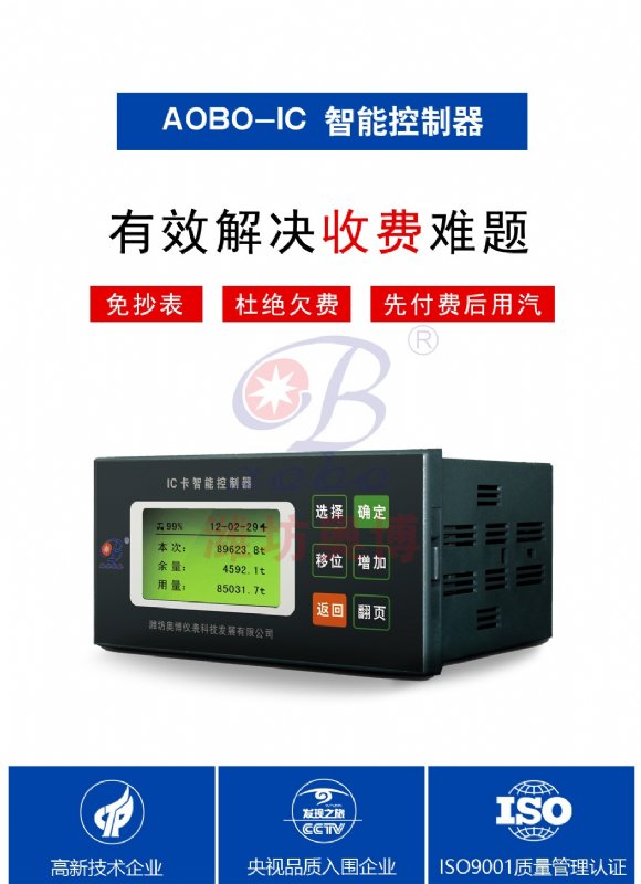 AOBO-IC卡智能控制器采用原装PHILIPS非接触式射频卡,保密性更强,安全性更高。该控制器结合能源现场计量仪表、能源供给中心端客户收费及查询系统、中心端远程数据