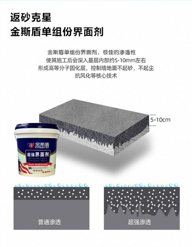 砂浆层,在产品渗透基层深度范围内,起到强化、封闭的作用,防止腻子或涂料批图(涂刷)于脱粉的基层出现空鼓、脱落、发霉现象。使用基础如:铲掉腻子后的混凝土顶层、硬度较低的二次翻修腻子层及劣质砂浆基层等腻子不易粘接处;本产品也可用于粘贴
