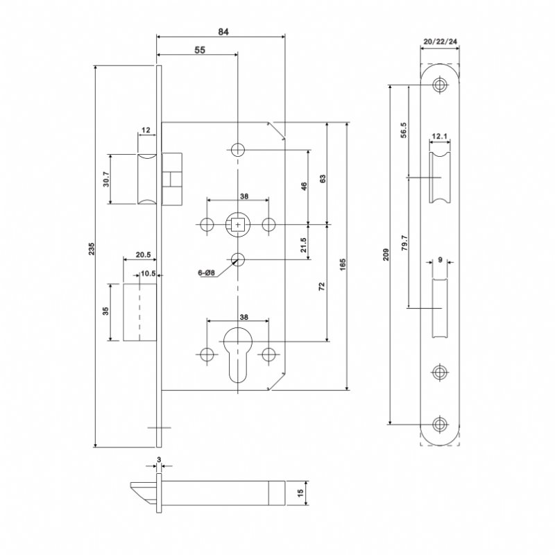 性能符合欧洲标准:EN12209,尺寸符合欧洲标准DIN18251