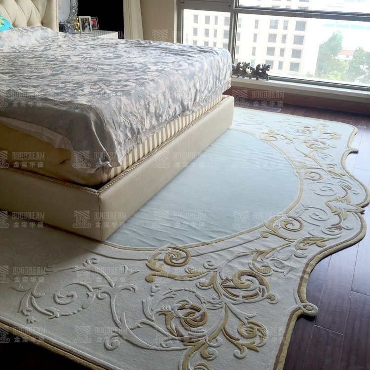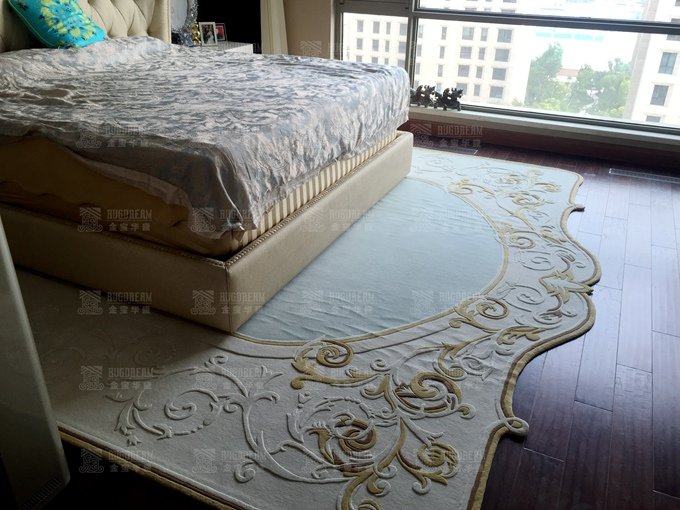 ,属于金宝华地毯厂卧室地毯中的——轻奢手工定制地毯。地毯品种为手工针刺地毯。