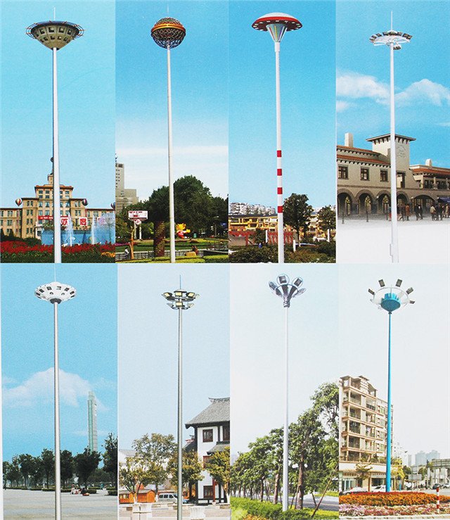 钢板制造,灯盘分框架式、封闭式、球式、飞碟式、景观式等各种造型,高度16米以上,光源集中,照度广,能创造类似白天的视觉效果,可见照明度、照亮度、均匀度高。