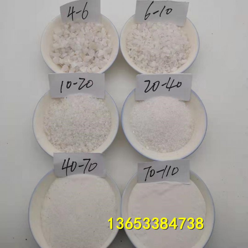 石英砂常用规格有:0.5-1mm、1-2mm、2-4mm、4-8mm、8-16mm、16-32mm、10-20目、20-40目、40-80目、100-120目。