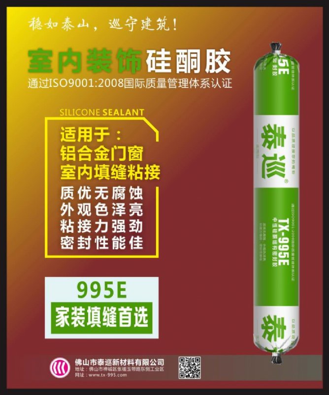 密封胶;固化速度快,强度高;无腐蚀,完全固化后具有优异的耐候耐老化性;对大多数建材具有良好的粘结性和相容性。