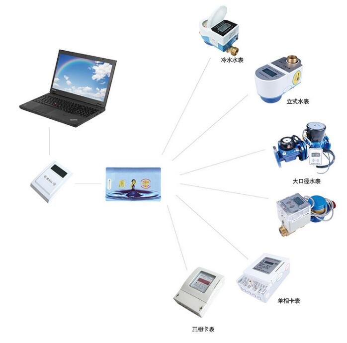 集中刷卡和显示功能:可单独配备与水表分离的外置刷卡器,通过485线可将多块水表(建