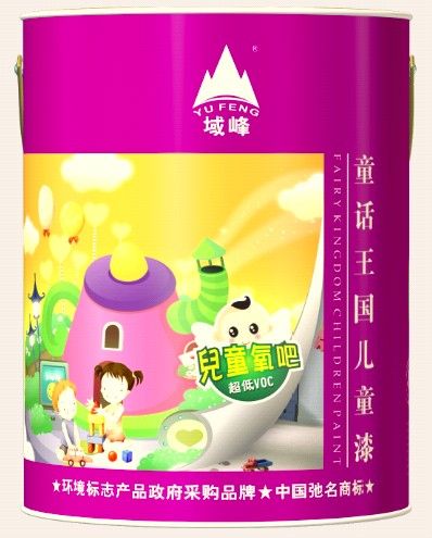 儿童漆,是域峰公司根据儿童健康需求,特别研制的一系列环保健康儿童漆。产品做到“零气味”,“零甲醛”,“零重金属”,超低VOC(低于欧标≤50g/L),让毒害物质远离儿童,超强防霉抗菌性能,保护墙体的同时,可防止霉菌危害呼吸道健康,本品还具有灵活的可调色性,让小朋友能拥有七彩缤纷的色彩空间,此外,童话王国儿童漆非常耐擦洗易清洁,即使小朋友再好动把墙面弄得再脏,您也只须用湿布轻轻拭擦,漆面马上恢复洁净,不留痕迹,色彩历久恒新。