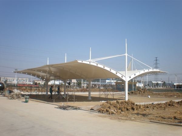 2.施工周期.钢结构需要焊接等复杂工艺,施工周期长.而膜结构车棚光滑简单,无需更多工艺在加工厂即可完成,施工周期短.
