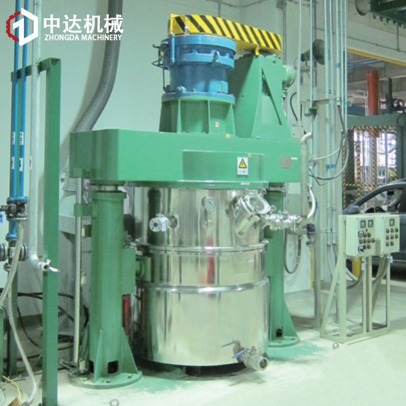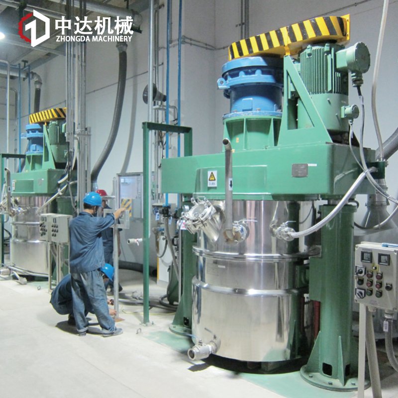 分散机的两高速分散机构和一个刮边刮底机构使物料在釜体内作复杂的运动,从而达到迅速分散研