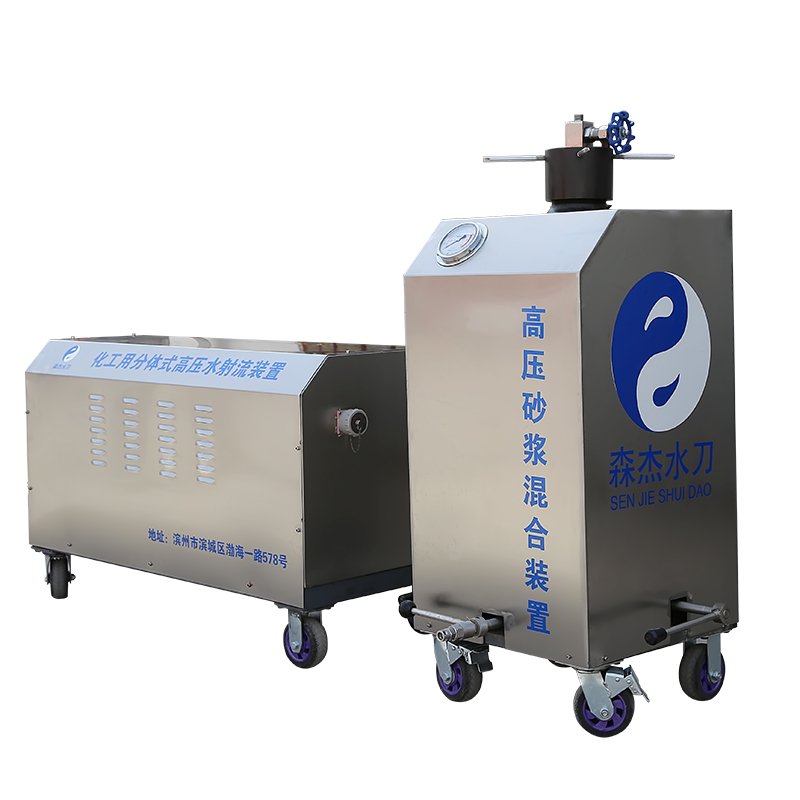 便携式化工水切割机,经过森杰机械科技有限公司的超高压水流增压技术,将水增压至30—50兆帕,达到超高水流速度,具有极高的动能水射流。从而可以切割任意的软材质。射流中混入介质后可以以切割任意软硬材质。