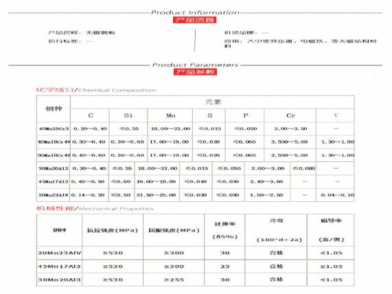 钢板,20Mn23AlV为高锰低磁钢,主要用于沿海消磁站、电磁吸盘、扫雷艇、潜水艇防燃材料。