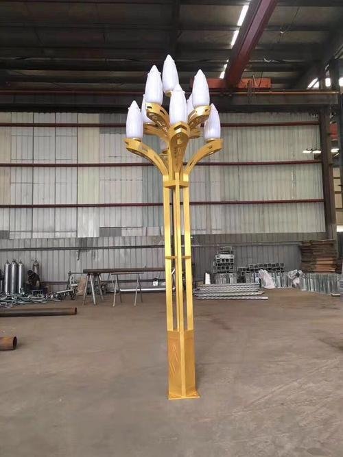 钢材卷制而成,工艺较简单。有多个玉兰形状的光源,多见为6~12个,照明度高,景观效果好。玉兰灯在照明的同时能够给人们带来观赏的愉悦感,因此备受人们喜爱。玉兰灯外观造型十分华丽,在很多大型文化广场、停车场、风景旅游区、市政主干道上我们都可以看到玉兰灯的存在,经济发展越好的城市,越是喜欢安装玉兰灯。