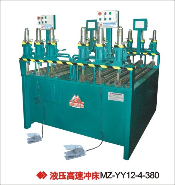 铜管等大量需要冲孔(或扩口,缩口)等工艺需求的工厂.他是我们完全自主研发的新型液压高速冲床.一台型号为MZ-YY10-2-380机就相当于普通冲床10台的功能.占地小,工人操作安全容易,高效.冲孔质量好,孔距精准是本机*大的优点.而且工作调节冲床行程更是变得轻松自动,不需要动用大