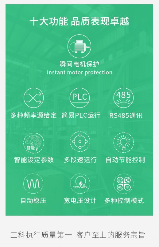 传感器矢量控制技术和转矩控制技术,不仅具备高端变频器同样优异的控制性能,同时结合国内应用特点,具备低频大扭矩,过载能力强,良好的抗干扰能力,进一步强化了环境和产品的可靠性,能够更好满足