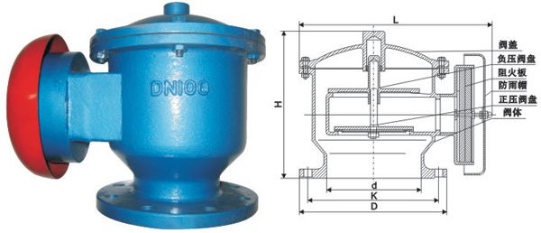 防爆阻火呼吸阀适用于储存内点低于28℃的甲类油品和闪点低于60℃的乙类油品,如汽油、笨、甲笨、煤油、轻柴油、