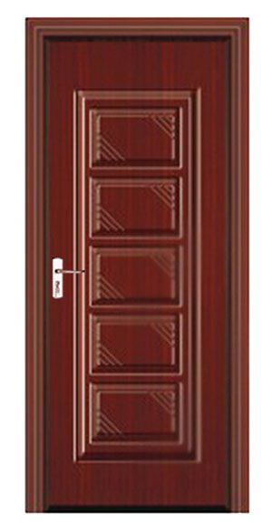 第二个系列的产品是拆装式钢框钢塑室内门,用木塑线条双面封边,标准尺寸为:920*2030*150,