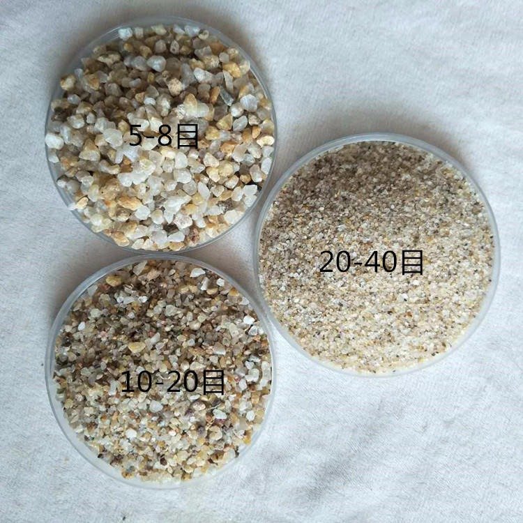 1、石英砂选自石英岩,颗粒经特殊磨圆处理,使颗粒浑圆。