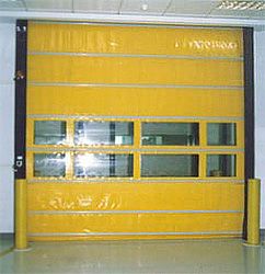 编码器限位,严格控制高速运行带来的限位误差,门柱底端装有红外线安全装置,同时帘布底端可选装进口安全气囊以保护门体下落过程对人员物品的伤害,并且门体标配有红色