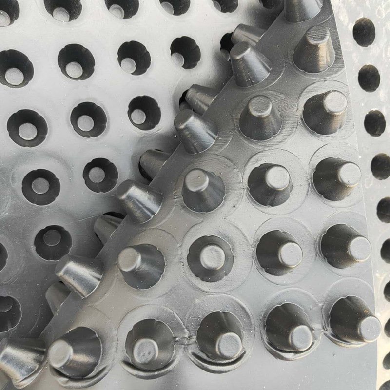 防排水保护板都有的凹凸式中空立筋结构,能够快速有用导出雨水,大大削减乃至消除防水层的静水压,经过这种自动导水原理能够到达自动防水的效果。