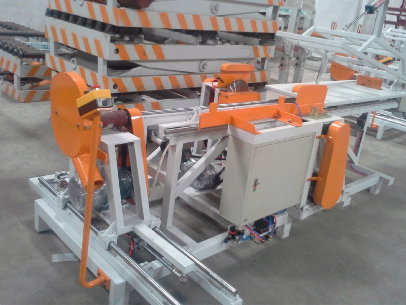 三边锯是将原本不齐边的中板剪切至齐边齐头。可改善对接后的中板的平整度,大大减少二修工作量,从而提高了对接效率和排板质量。