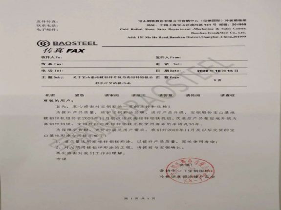 在钢基板上热镀100-200g/m2的55%AlZn保护层, 耐腐蚀性主要是因为铝,铝的保护功能。当锌受到磨损时,铝便形成一层致密的