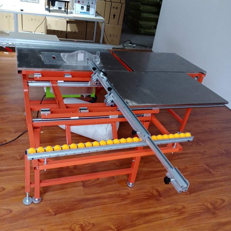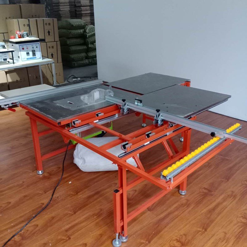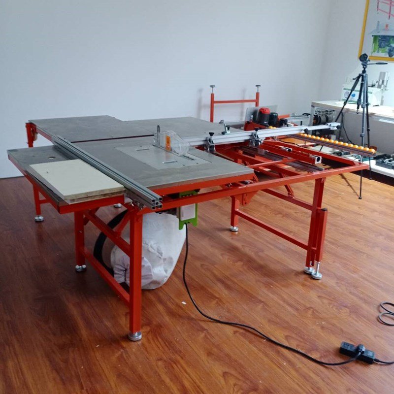 锯台三面延伸一个人切割1.22*2.44的大板轻松完成,横裁2.44米 竖裁1.22米