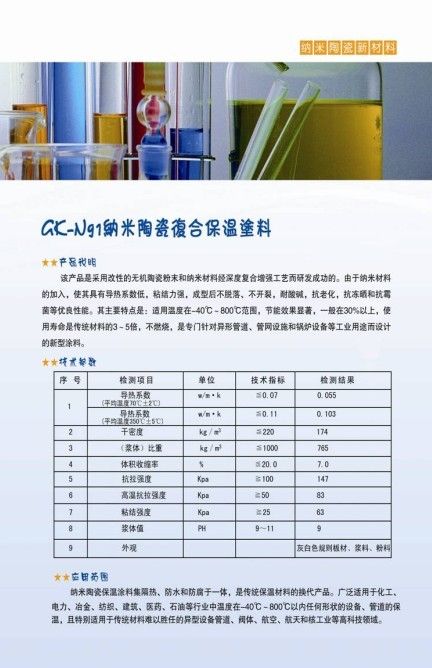 特点 由改性的无机陶瓷粉末、纳米助剂、高温