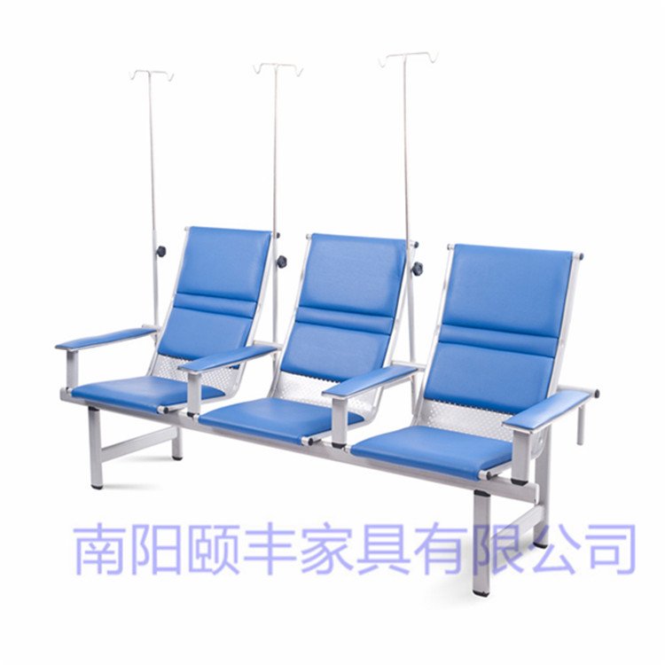 钢板厚度6mm.软垫采用木板、高回弹海绵及耐刮西皮钉制而成,加高靠背坐感舒适不变形,每个位子配一根可升降不锈钢输液杆。