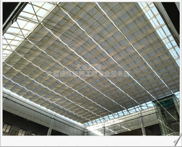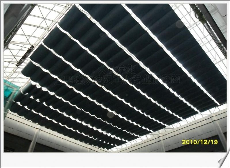 3. 利用钢丝绳传动,噪音小,主要用于大面积的折叠式天棚;