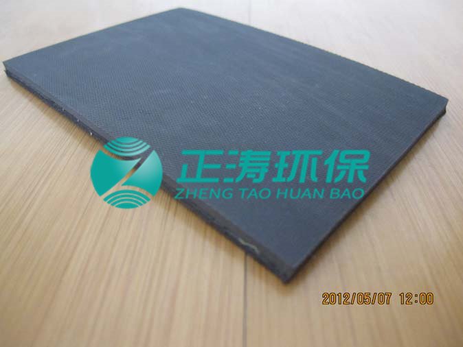 2、平整铺设隔音垫材料注意:橡胶片层朝上,弹性层朝下;每片材料的一侧有搭接口整片铺设时必须紧实搭接!