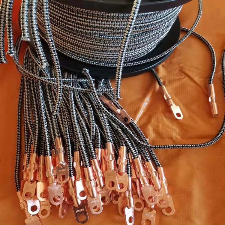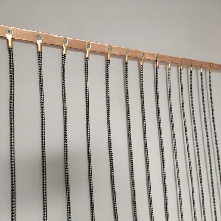 防静电门帘绳两端接线铜端子与铜质横梁连接,静电通过