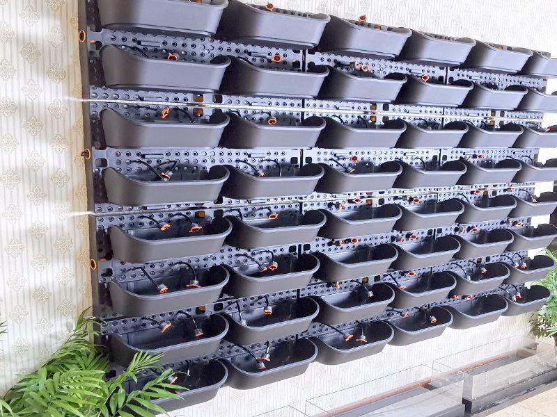 1:产品内置水路系统,一个进水解决所有花盆滴灌,不用布置繁杂的浇注系统。