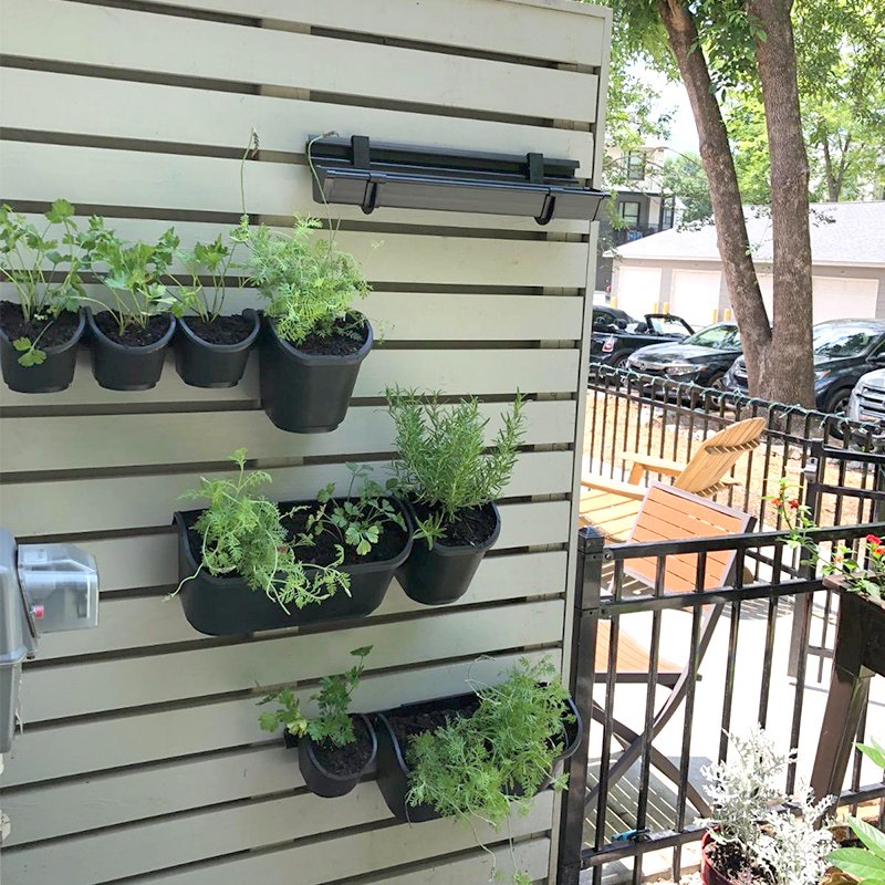 1:产品内置水路系统,一个进水解决所有花盆滴灌,不用布置繁杂的浇注系统。