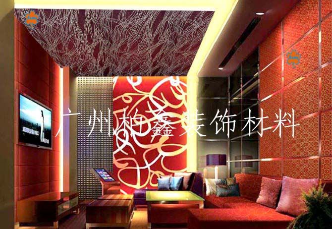 马赛克状)、宽条、细条、板材可弯成曲面形状。可使室内体形设计更加灵活多变,富有装饰效果。甚至可以将装饰艺术画通过电脑复印在聚酯纤维吸声板上。