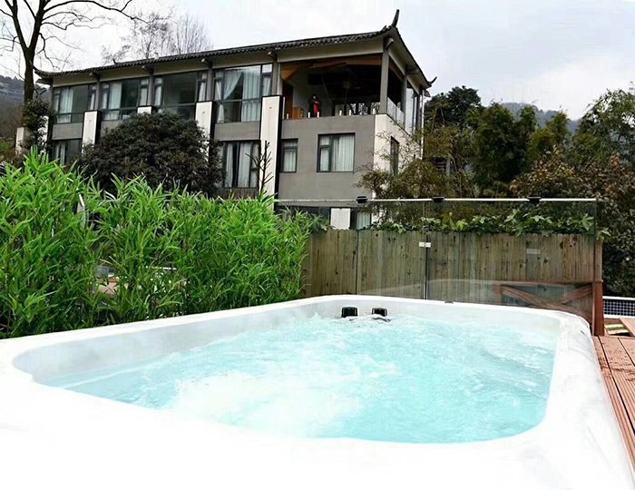 板材,耐用,防晒防裂防变色。泳池内置臭氧消毒、紫外线杀毒及循环过滤水处理系统,呵护您的健康。