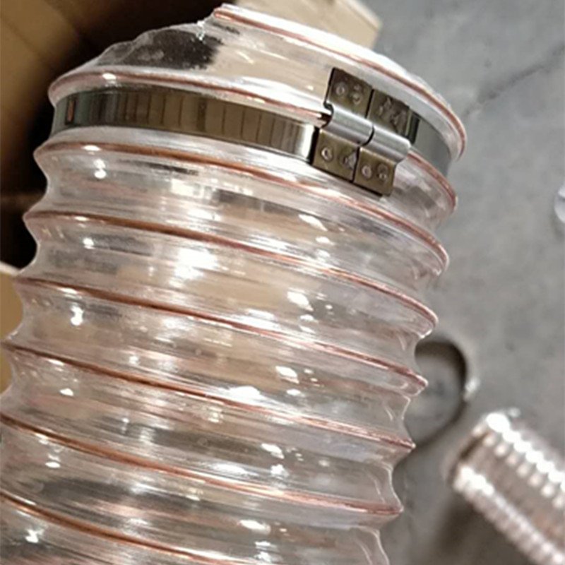 9、产品采用聚氨酯PU材质内嵌镀铜螺旋钢丝加工而成,具有高伸缩性、弯曲灵活、重量轻、耐老化、抗撕裂、高透明度可观察抽吸和输送过程,存储及运输成本低等特点。