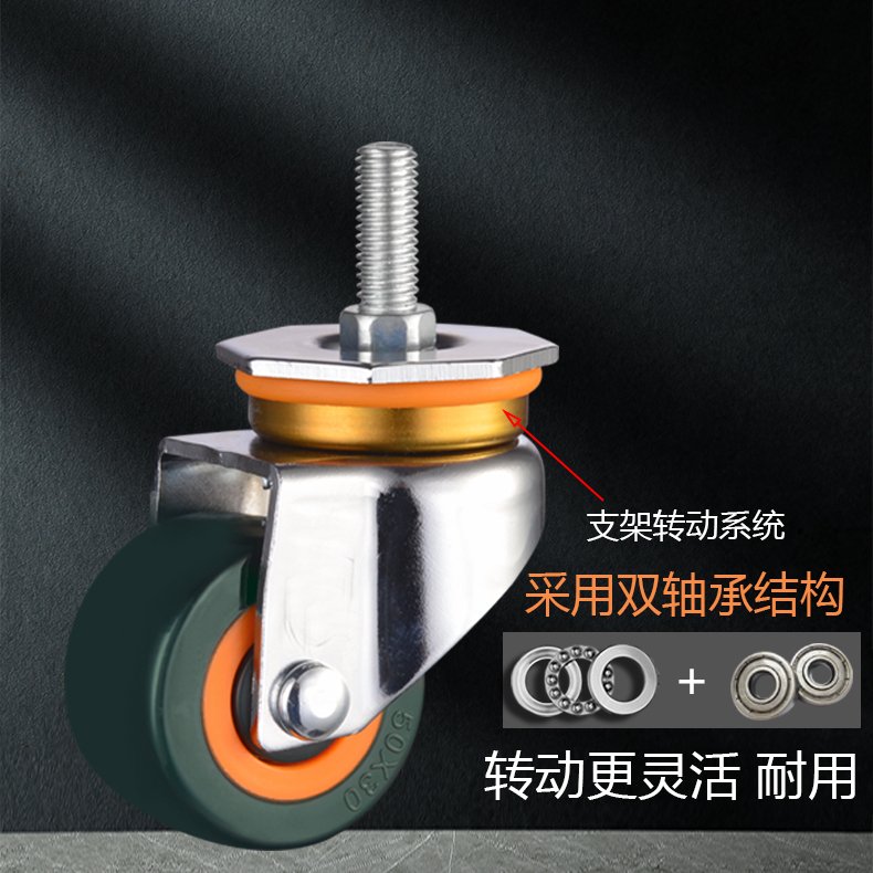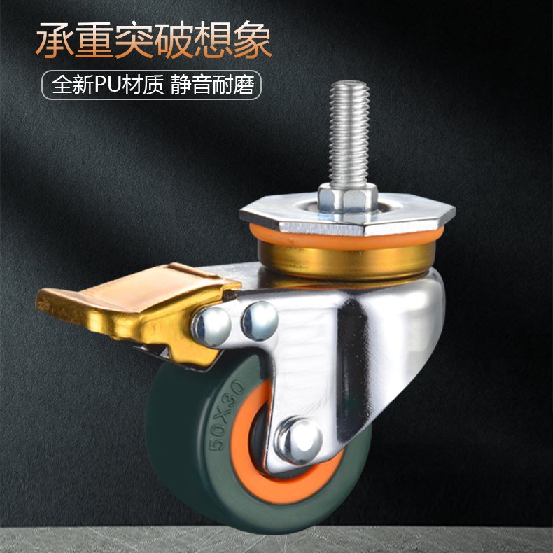 万向轮聚氨酯pu静音脚轮2寸1.5寸黄锌家具丝杆带刹车万向脚轮