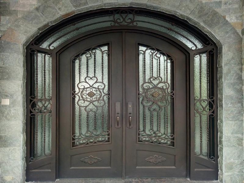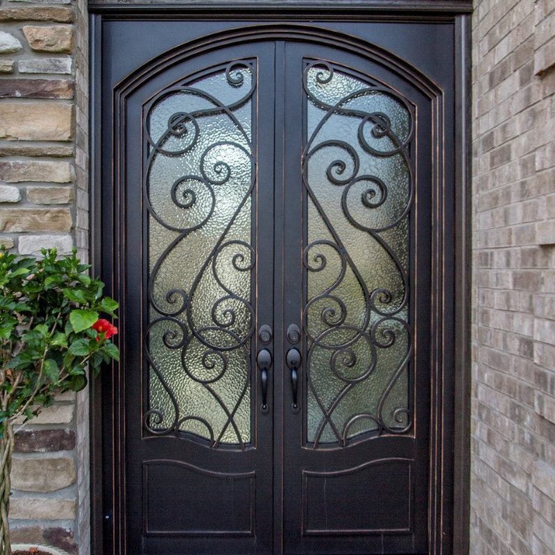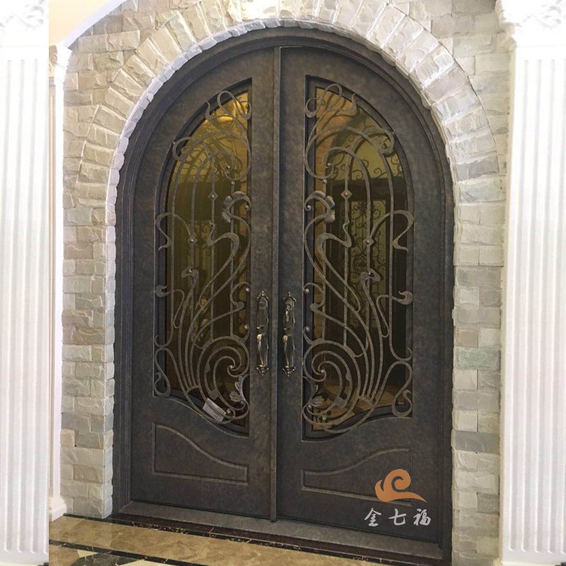 厂家直销铁艺进户门 锻打铁艺玻璃双开进户门